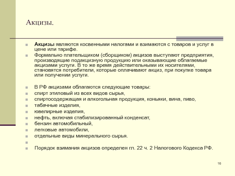 Акцизы являются косвенными налогами и взимаются с товаров и услуг