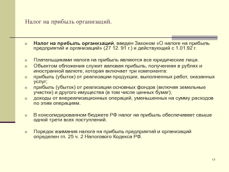 налоге на прибыль предприятий и организаций» (27 12. 91 г.)