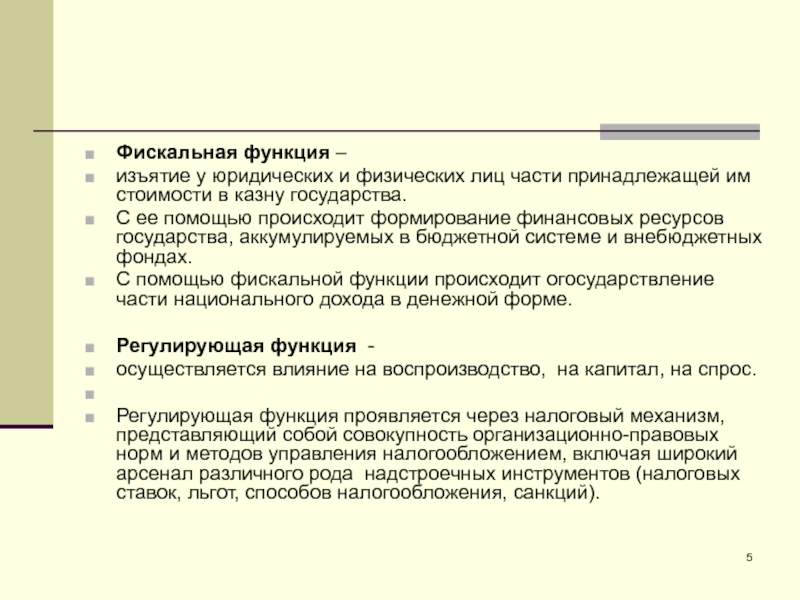 С помощью фискальной функции происходит огосударствление части национального дохода в денежной форме.