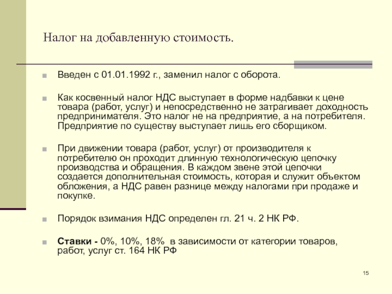 Как косвенный налог НДС выступает в форме надбавки к цене