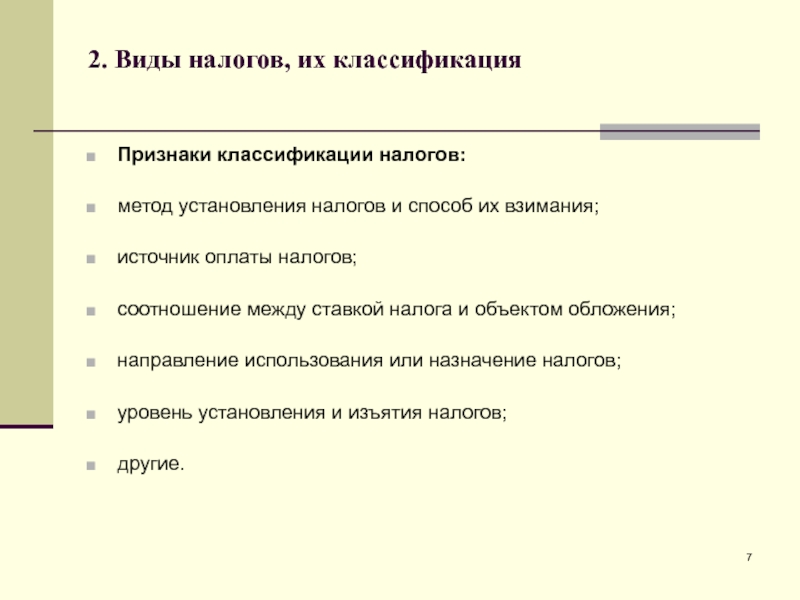 налогов, взимаемых в стране, форм и методов налогообложения, сбора и