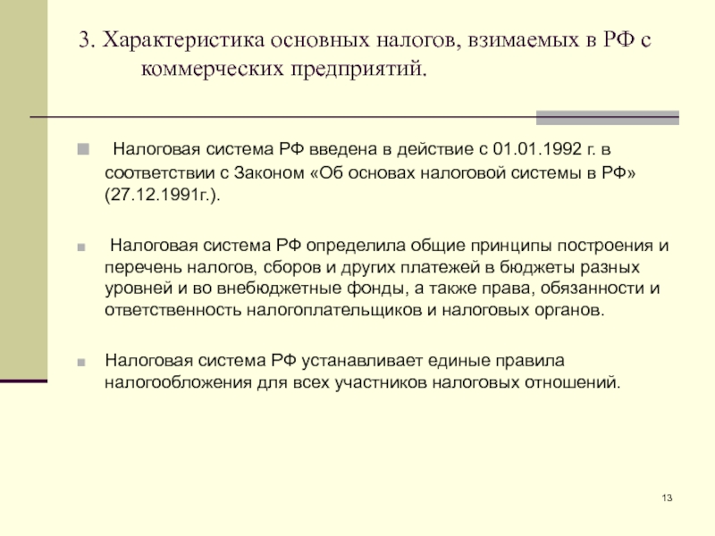 в соответствии с Законом «Об основах налоговой системы в РФ» (27.12.1991г.).