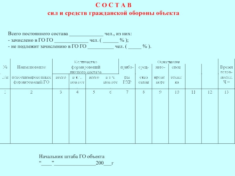 1. Основные показатели состояния ГО объекта на 01 января 2008г.