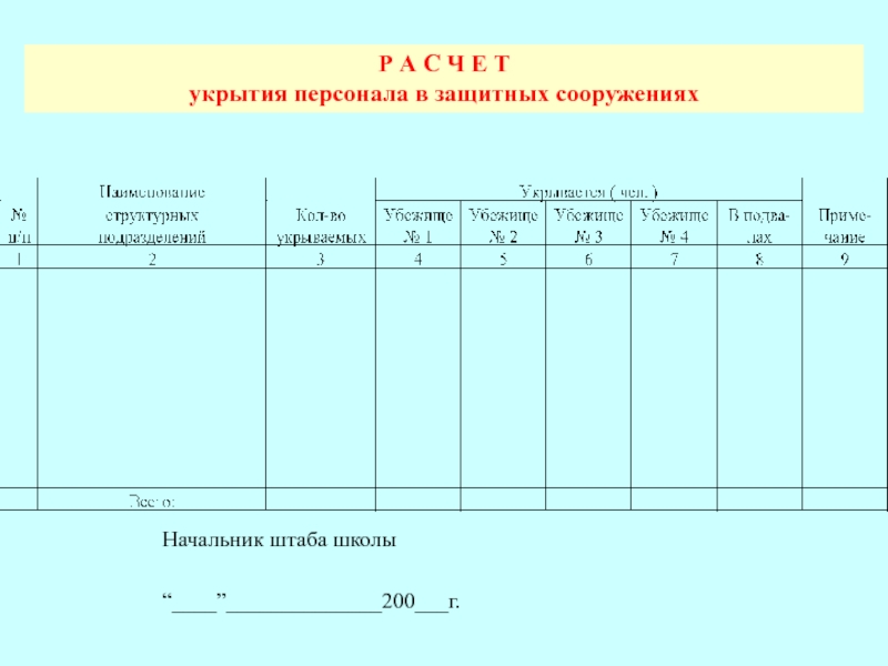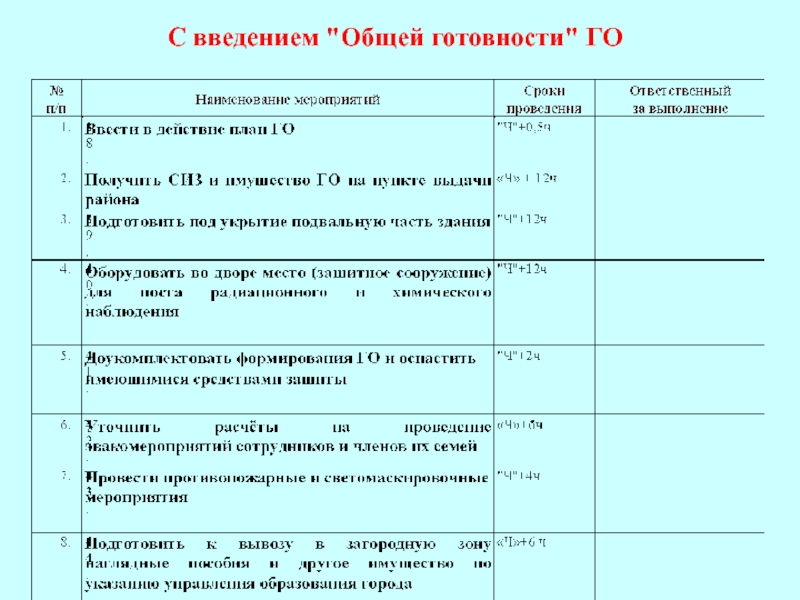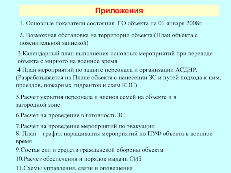 8. План – график наращивания мероприятий по ПУФ объекта в военное время