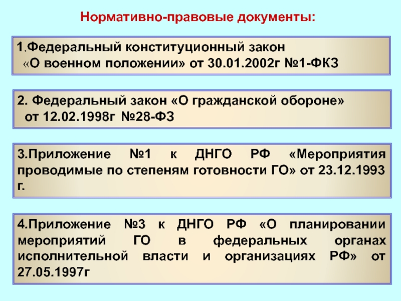 4.Приложение №3 к ДНГО РФ «О планировании мероприятий ГО в федеральных органах исполнительной власти и организациях РФ» от 27.05.1997г