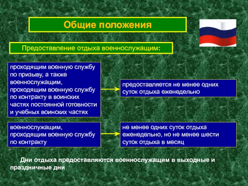 Дни отдыха предоставляются военнослужащим в выходные и праздничные дни