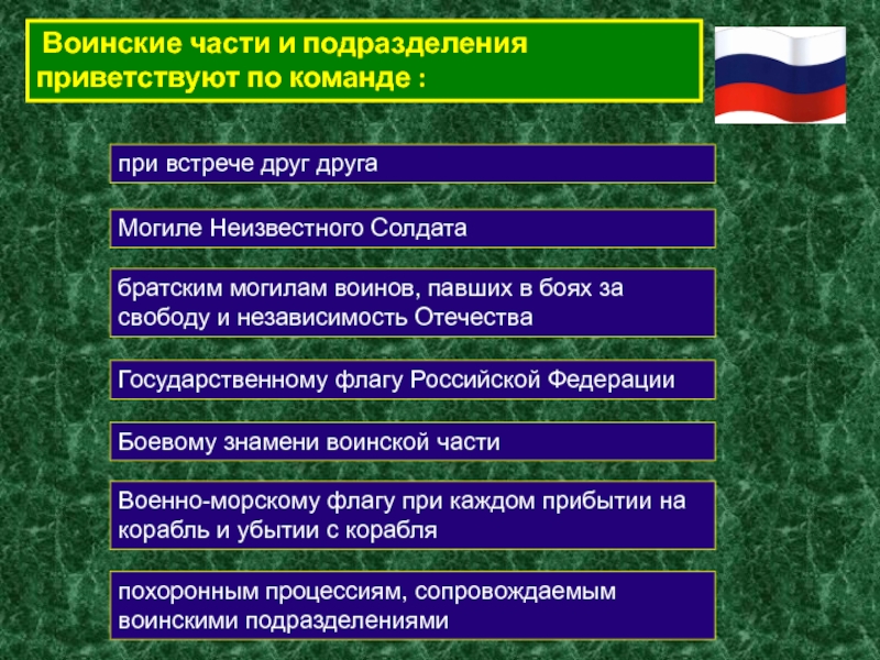 Военно-морскому флагу при каждом прибытии на корабль и убытии с корабля