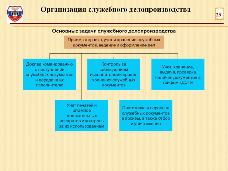 Доклад командованию о поступлении служебных документов и передача их исполнителю