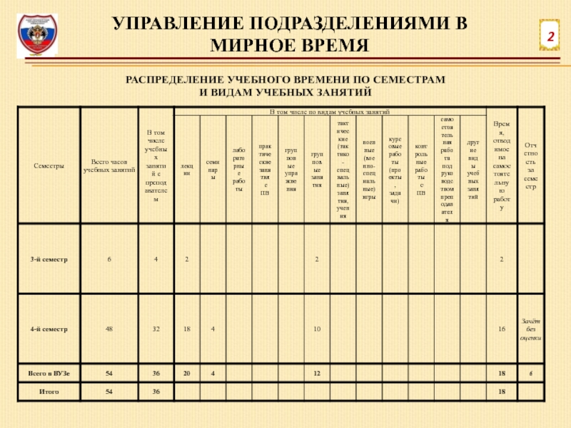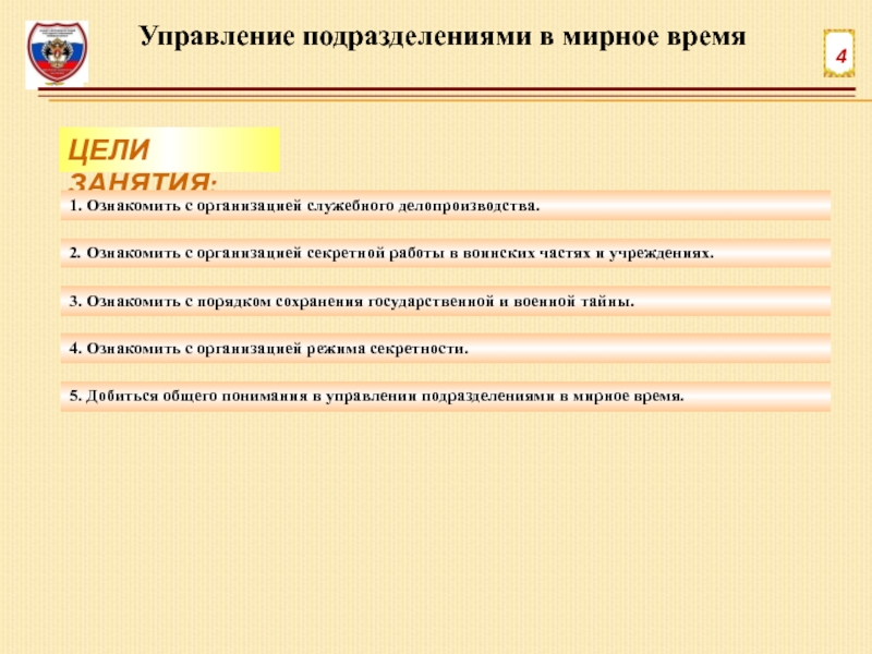 5. Добиться общего понимания в управлении подразделениями в мирное время.