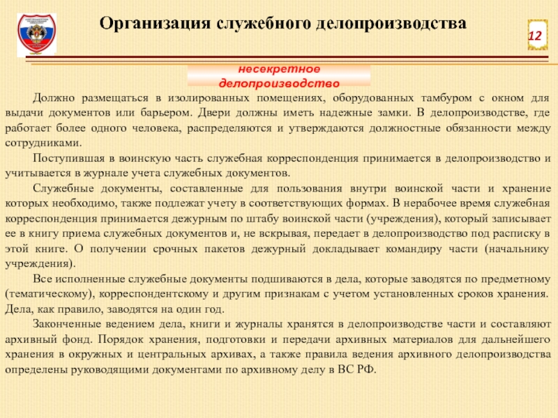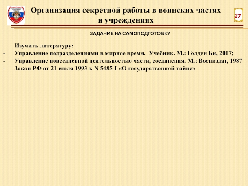 2. Ознакомить с организацией секретной работы в воинских частях и учреждениях.