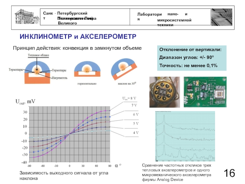 Сравнение частотных откликов трех тепловых акселерометров и одного микромеханического акселерометра фирмы Analog Device