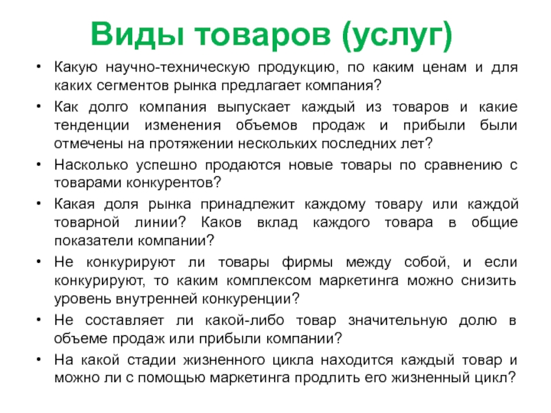 Какая доля рынка принадлежит каждому товару или каждой товарной линии? Каков вклад каждого товара в общие показатели компании?