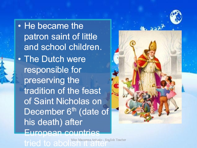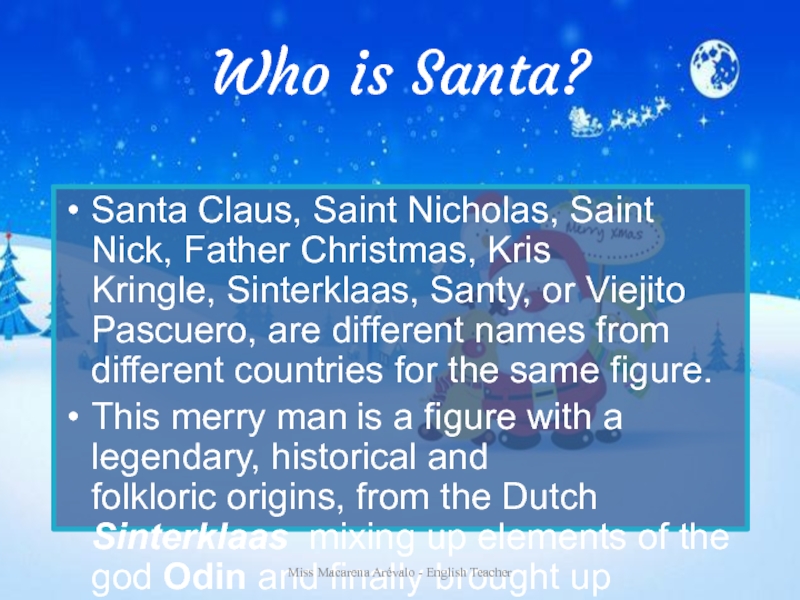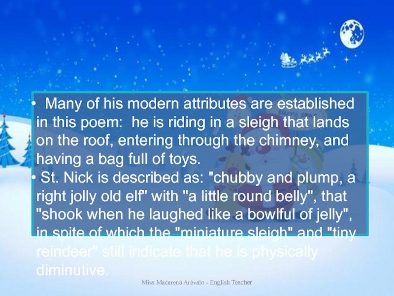 From him the modern figure has his long beard and the horse he rides at night.