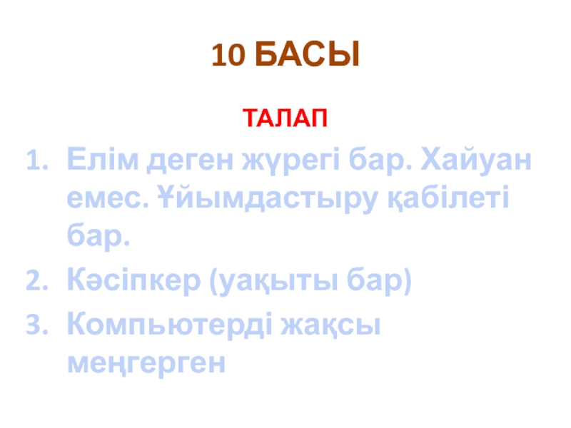 Слайд 1210 БАСЫ