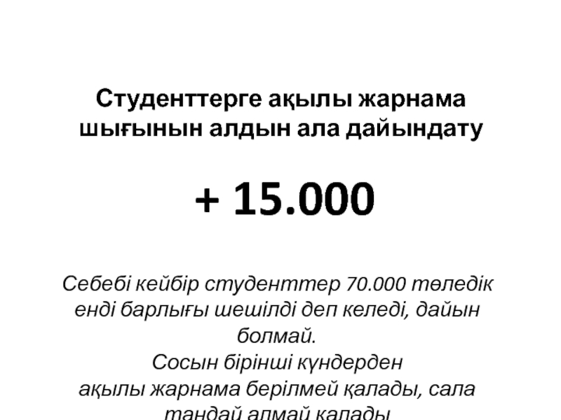 Слайд 29Студенттерге ақылы жарнама шығынын алдын ала дайындату