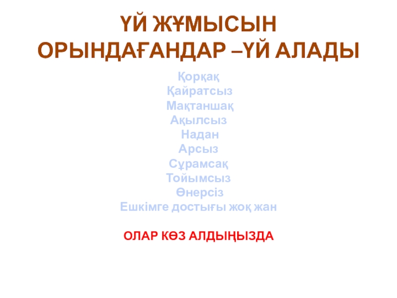 Слайд 47ҮЙ ЖҰМЫСЫН ОРЫНДАҒАНДАР –ҮЙ АЛАДЫ
