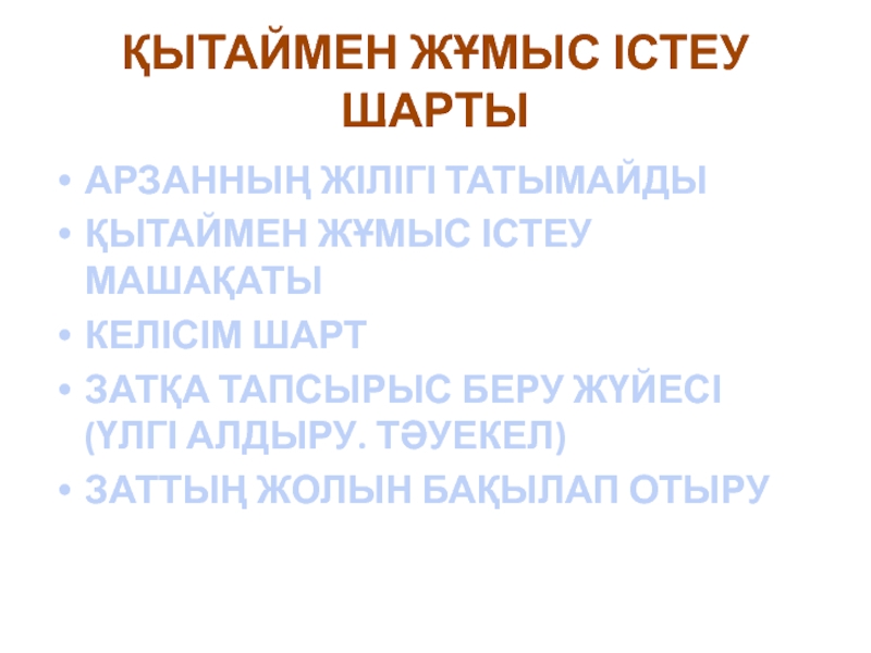 Слайд 30ҚЫТАЙМЕН ЖҰМЫС ІСТЕУ ШАРТЫ