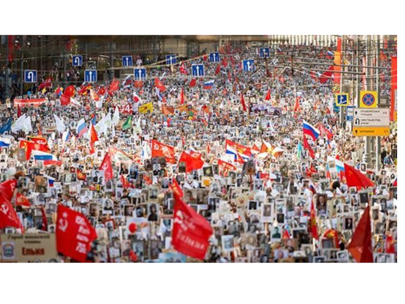 по улицам городов и сел с фотографиями своих родственников — ветеранов армии и флота, партизан, подпольщиков, бойцов Сопротивления, тружеников тыла, узников концлагеря, блокадников, детей войны