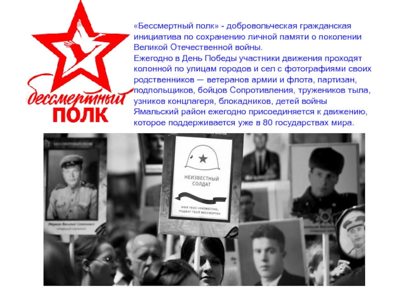 Слайд 6«Бессмертный полк» - добровольческая гражданская инициатива по сохранению личной памяти