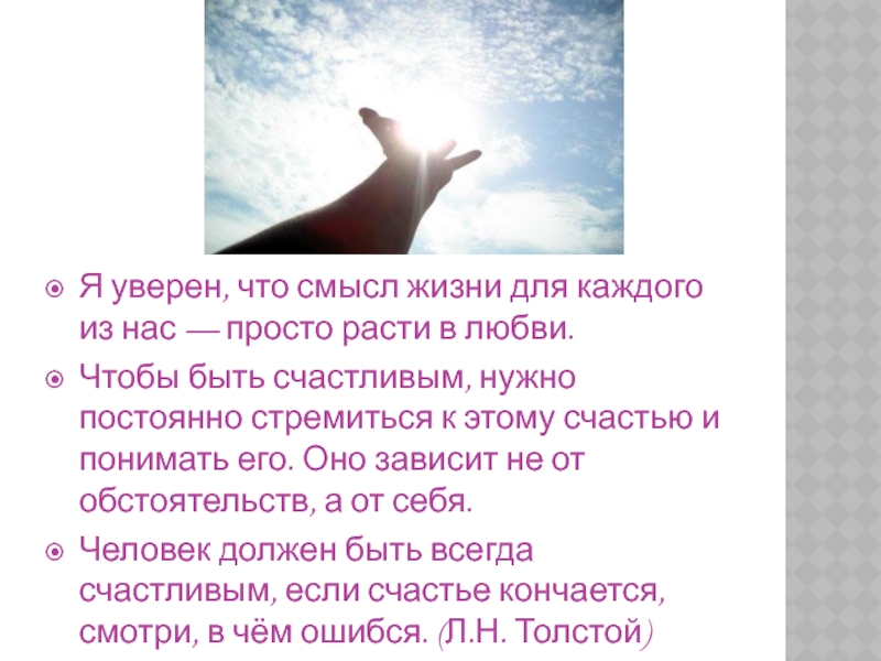 Слайд 3Я уверен, что смысл жизни для каждого из нас — просто расти в любви.