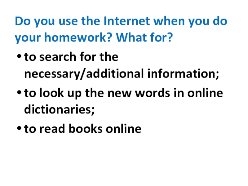 Do you use the Internet when you do your homework? What for? to search for the necessary/additional