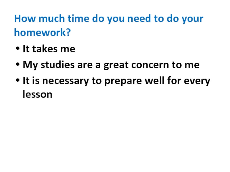 How much time do you need to do your homework?It takes meMy studies are a great concern