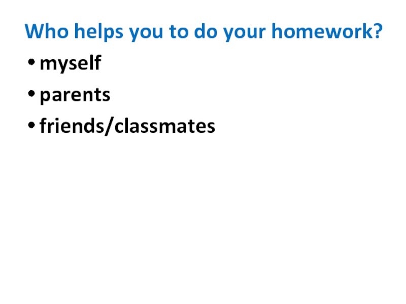 Who helps you to do your homework?myselfparentsfriends/classmates