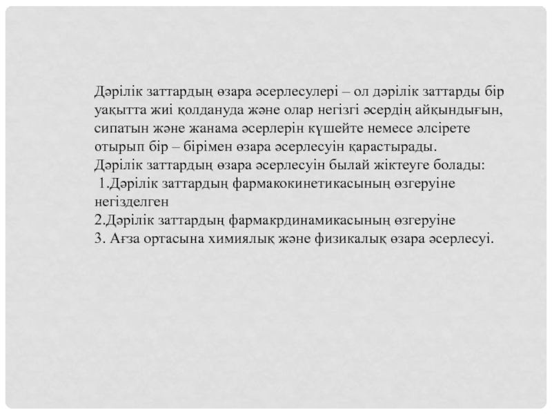 Слайд 12Дәрілік заттардың өзара әсерлесулері – ол дәрілік заттарды бір уақытта