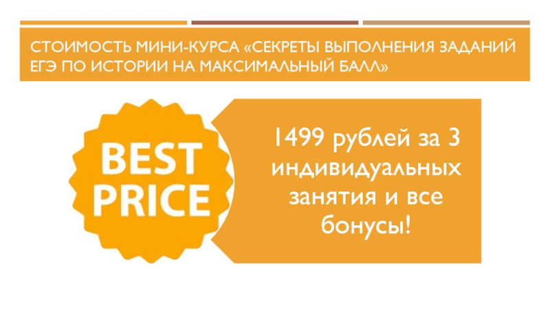 Слайд 11Стоимость мини-курса «Секреты выполнения заданий егэ по истории на максимальный