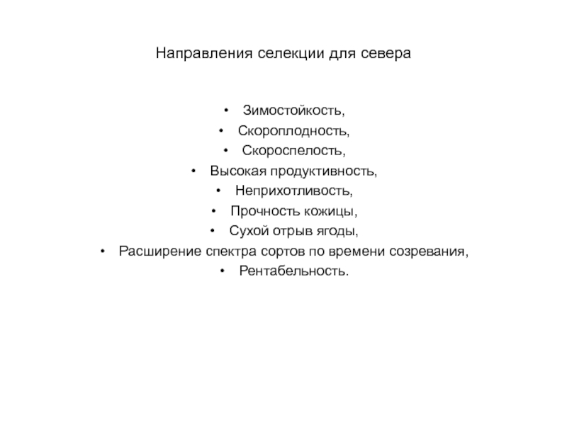 Слайд 2Направления селекции для севера