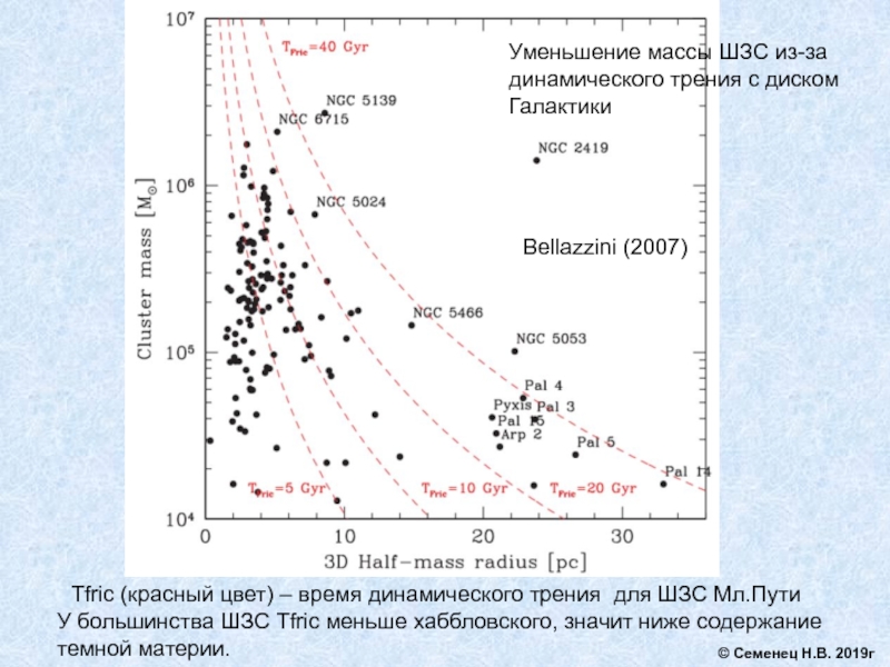 Уменьшение массы ШЗС из-за динамического трения с диском Галактики