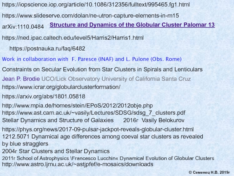 2011г School of Astrophysics \Francesco Lucchin« Dynamical Evolution of Globular Clusters