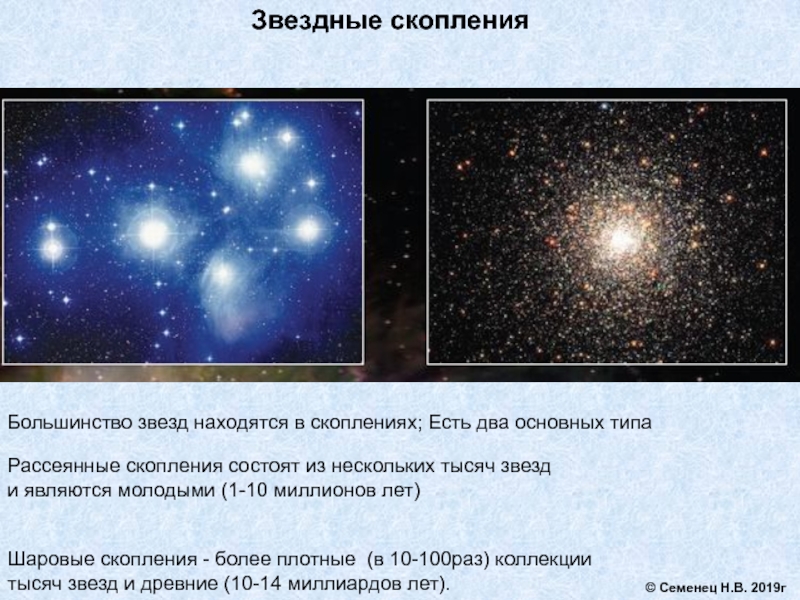 Шаровые скопления - более плотные (в 10-100раз) коллекции