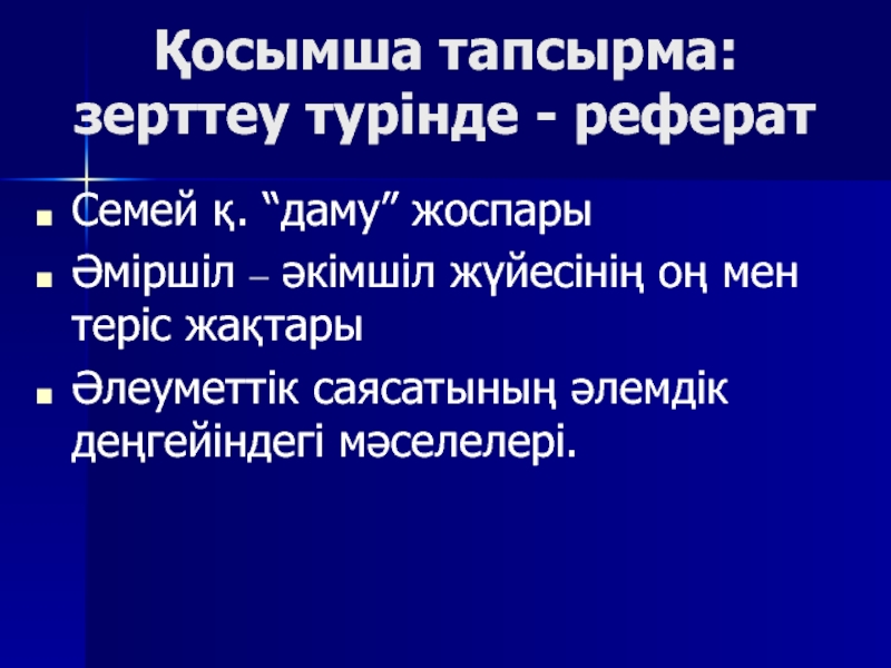 Әлеуметтік саясатының әлемдік деңгейіндегі мәселелері.