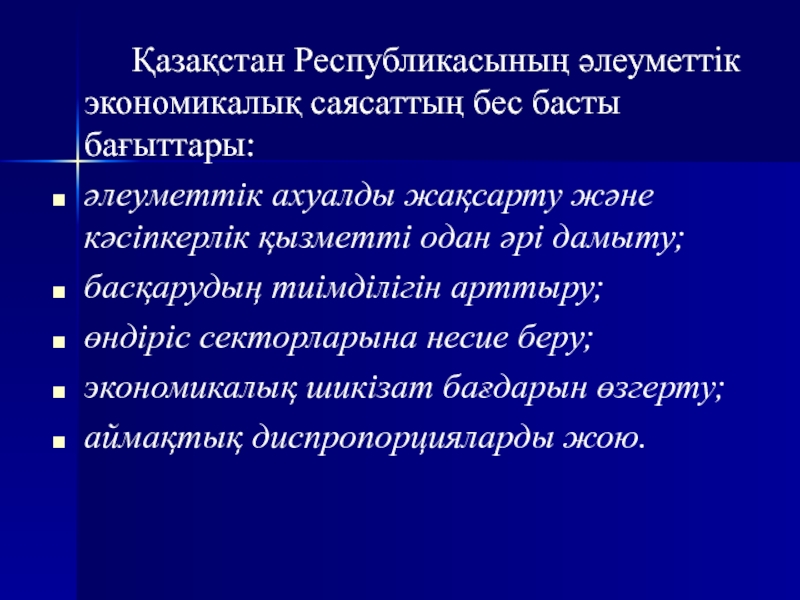 Слайд 16 Қазақстан Республикасының әлеуметтік экономикалық саясаттың бес