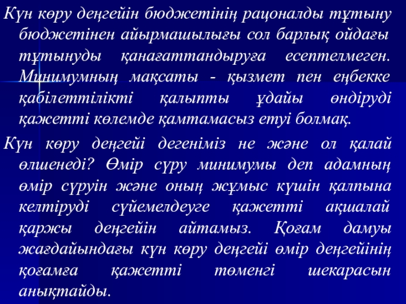 ойдағы тұтынуды қанағаттандыруға есептелмеген. Минимумның мақсаты - қызмет пен еңбекке