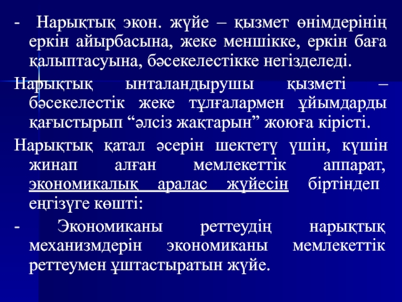 Слайд 6- Нарықтық экон. жүйе – қызмет өнімдерінің еркін айырбасына, жеке