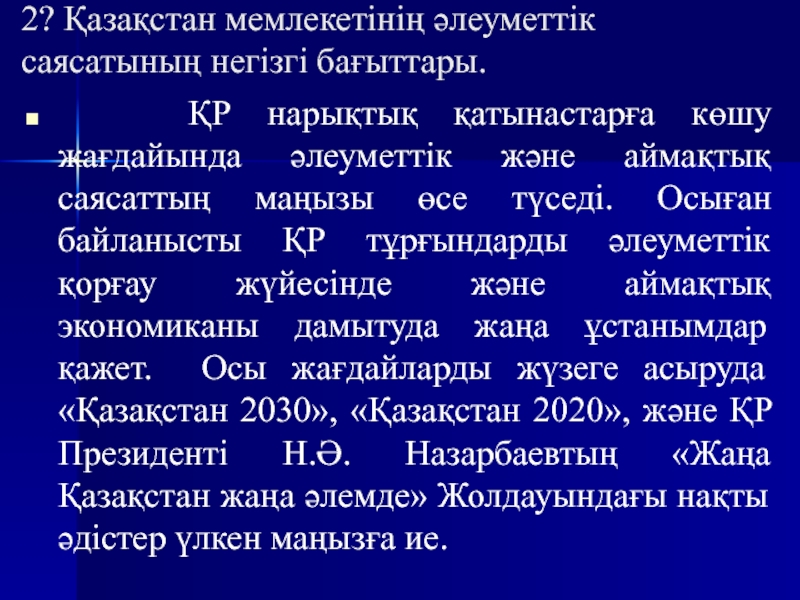 Слайд 152? Қазақстан мемлекетінің әлеуметтік саясатының негізгі бағыттары.