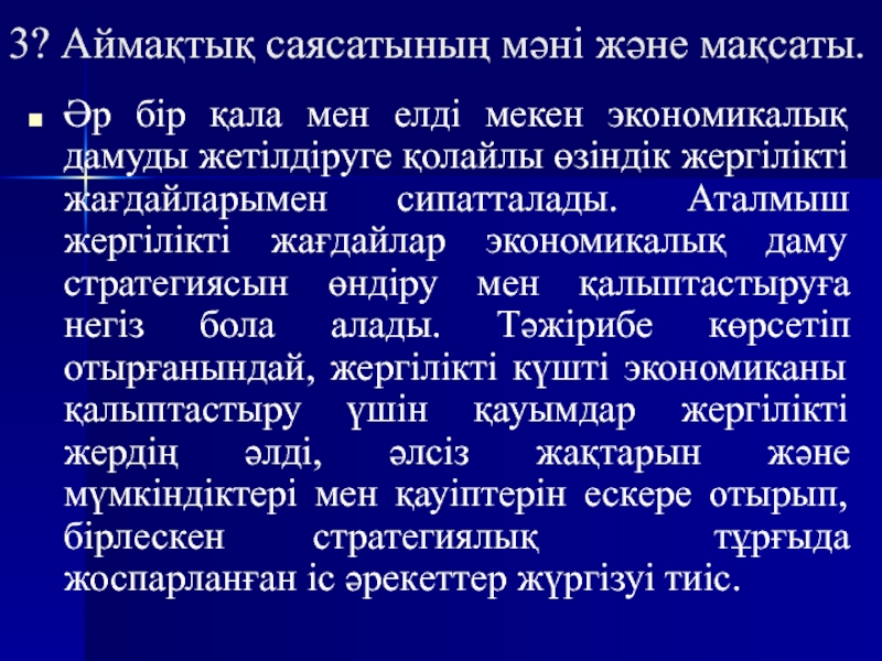 Слайд 183? Аймақтық саясатының мәні және мақсаты.