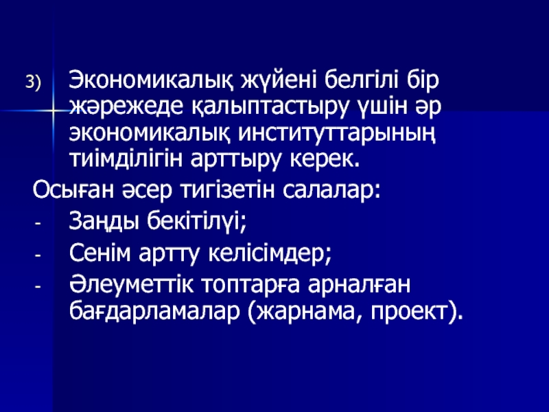 Слайд 14Экономикалық жүйені белгілі бір жәрежеде қалыптастыру үшін әр экономикалық институттарының