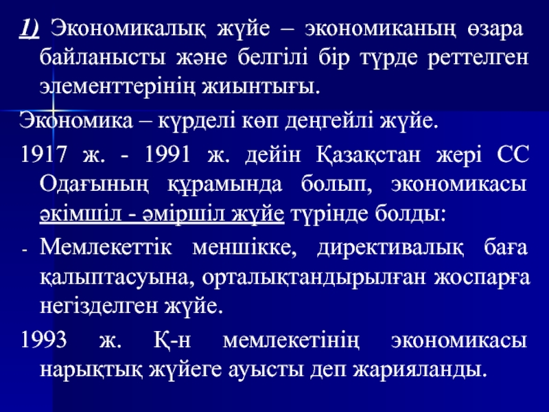 Слайд 51) Экономикалық жүйе – экономиканың өзара байланысты және белгілі бір