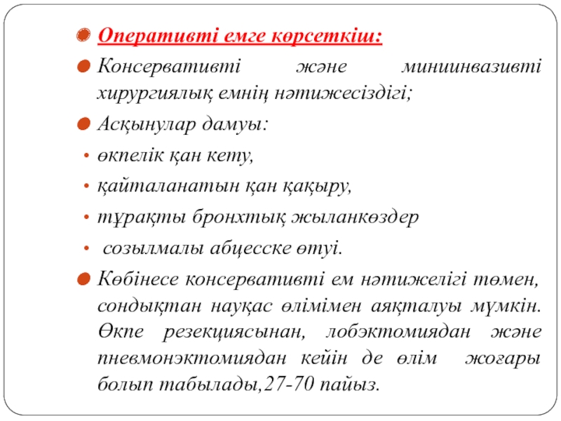 Слайд 24Созылмалы, рецидивтеуші абсцесстері бар науқастарға оперативті ем тағайындалады. Себебі оларды