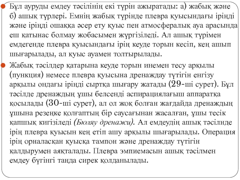 б) ашық түрлері. Емнің жабық түрінде плевра қуысындағы іріңді және