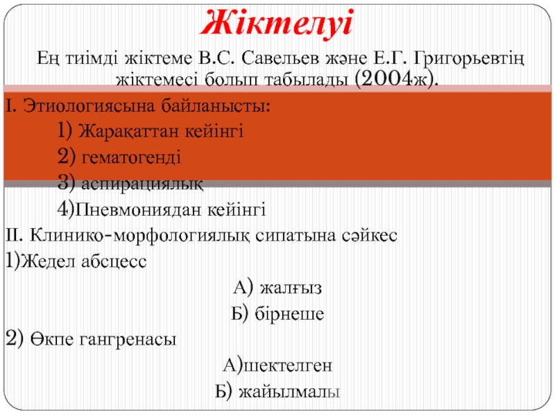 Ең тиімді жіктеме В.С. Савельев және Е.Г. Григорьевтің жіктемесі