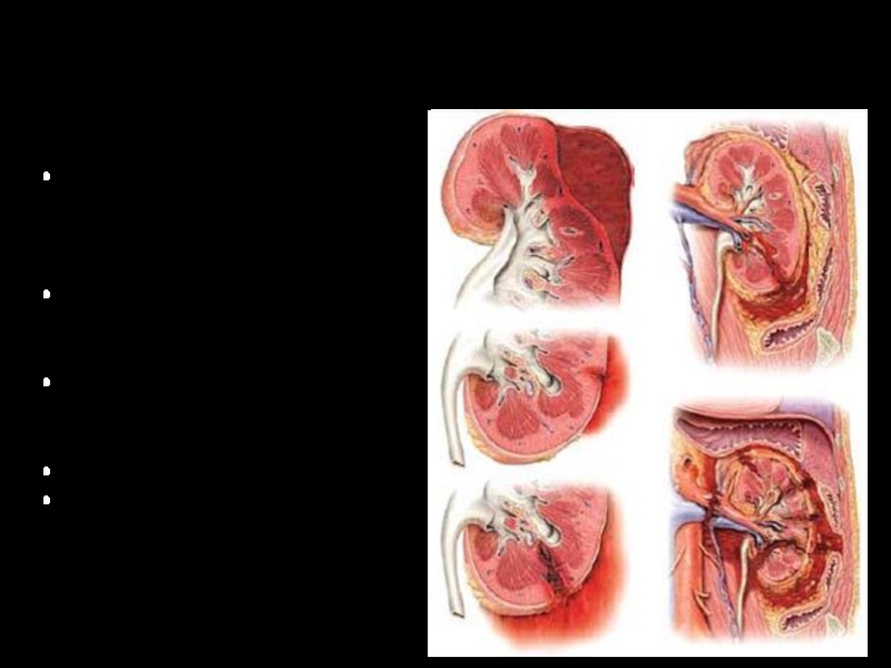 При наличии предшествующих травме патологических изменений в почке (гидронефроз, пионефроз, аномалии почек, хронический пиелонефрит) повреждение почки происходит при незначительных по силе ударах – так называемый, самопроизвольный разрыв почки.