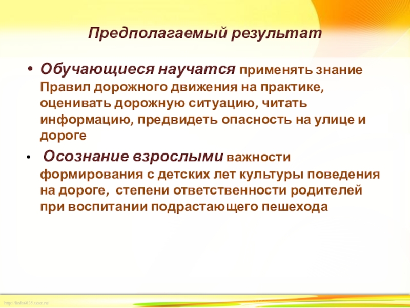 повышение компетентности родителей посредством партнерских взаимоотношений (взрослые должны знать правила дорожного движения и показывая личный пример социального поведения);