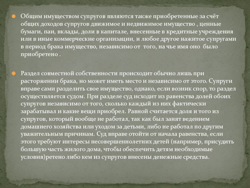 Слайд 8Общим имуществом супругов являются также приобретенные за счёт общих доходов