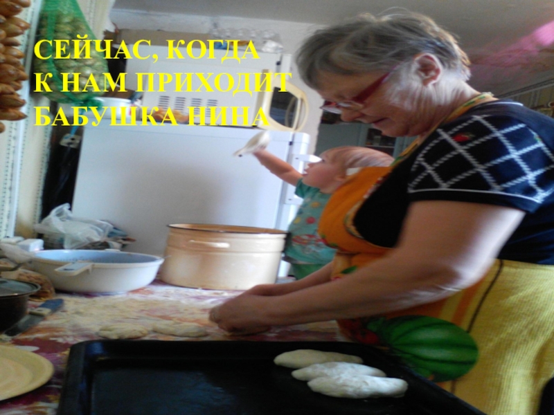 Слайд 5Сейчас, когда к нам приходит бабушка Нина