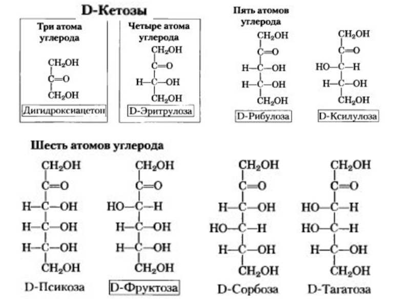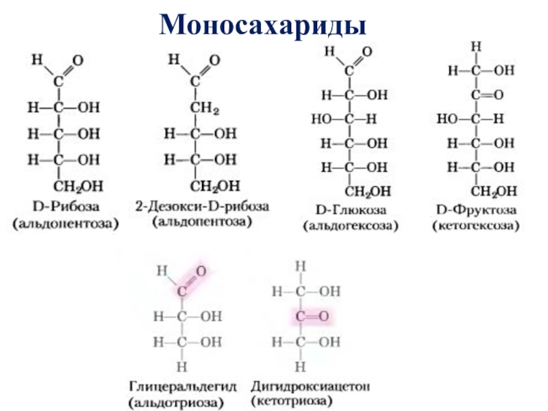 Простые (моносахариды - D-глюкоза, D-фруктоза…);