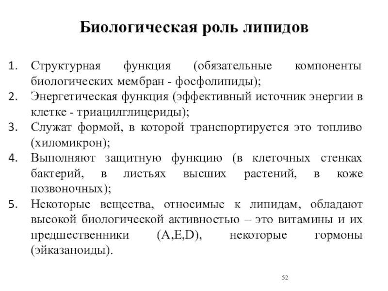 Некоторые вещества, относимые к липидам, обладают высокой биологической активностью – это витамины и их предшественники (А,Е,D), некоторые гормоны (эйказаноиды).